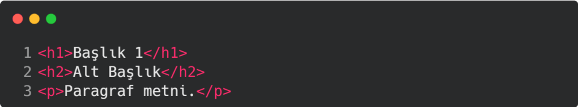 - <html>: HTML belgesinin başlangıcını ve sonunu belirler.