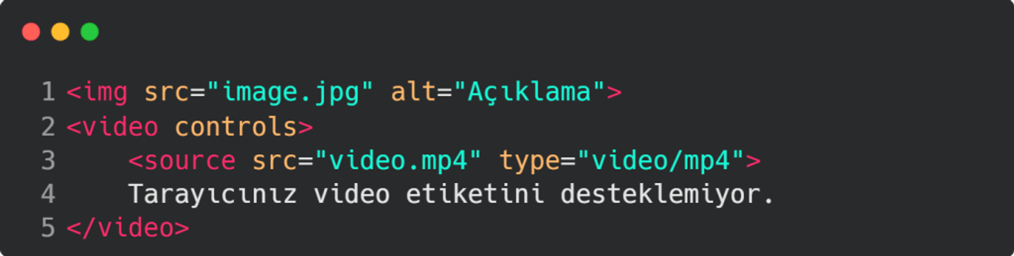- <!DOCTYPE html>: Bu satır, belgenin HTML5 standardına uygun olduğunu belirtir.