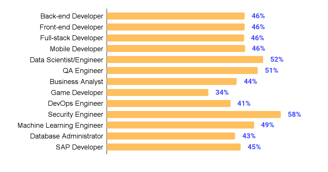 - Ankete katılanların %66’sını back-end, full-stack ve front-end developerlar oluşturdu.