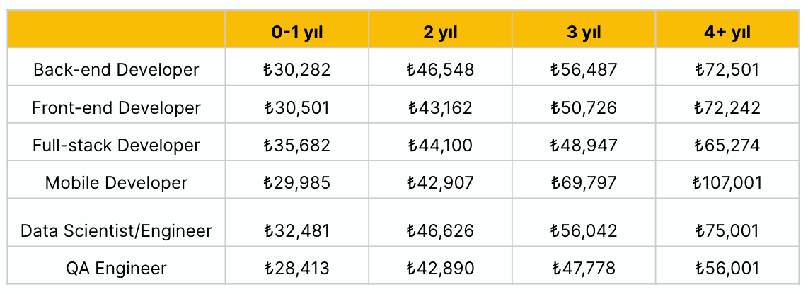 Deneyime Göre 2024 Maaş & Zam Seviyeleri