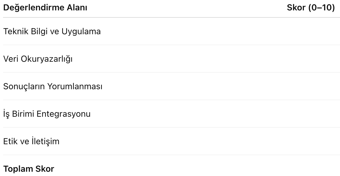 - AI sonuçlarını iş hedefleri ve KPI’larla ilişkilendirebilme