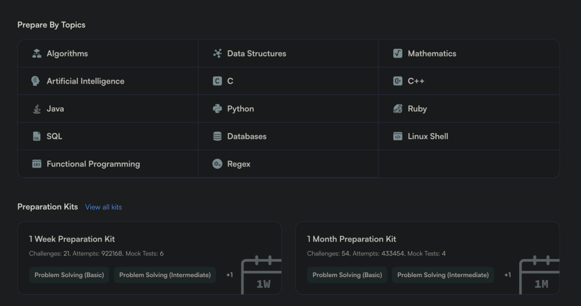 HackerRank, geniş bir kodlama egzersizi ve algoritma çalışmaları koleksiyonuna sahip bir platformdur. Kullanıcılar, belirli programlama dillerinde egzersizler yaparak ve algoritma problemleri çözerek puan toplayabilirler. HackerRank, kullanıcılarına çeşitli konularda (örneğin veri yapıları, matematik, yapay zeka) problem setleri sunar ve bu da yazılımcıların belirli alanlarda uzmanlaşmasına yardımcı olur. Ayrıca, platform, yazılımcıların becerilerini geliştirmelerini sağlarken, işverenlerin de potansiyel çalışanları değerlendirmeleri için bir araç sunar. Teknik mülakatlara hazırlananlar için mükemmel bir platform olan HackerRank, yazılımcılara gerçek dünya problemleri üzerinde çalışma fırsatı verir ve bu problemleri çözmek için gerekli algoritma ve veri yapıları bilgilerini pekiştirmelerine olanak tanır.