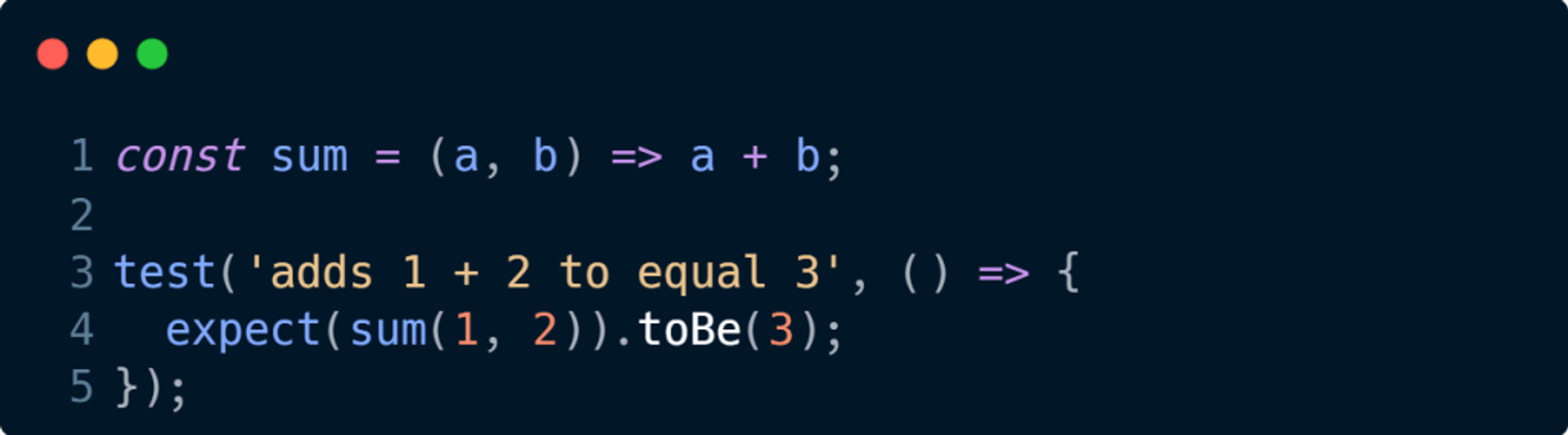 Jest ile basit bir test senaryosu oluşturmak oldukça kolaydır. Aşağıda, temel bir jest testi örneği bulunmaktadır: