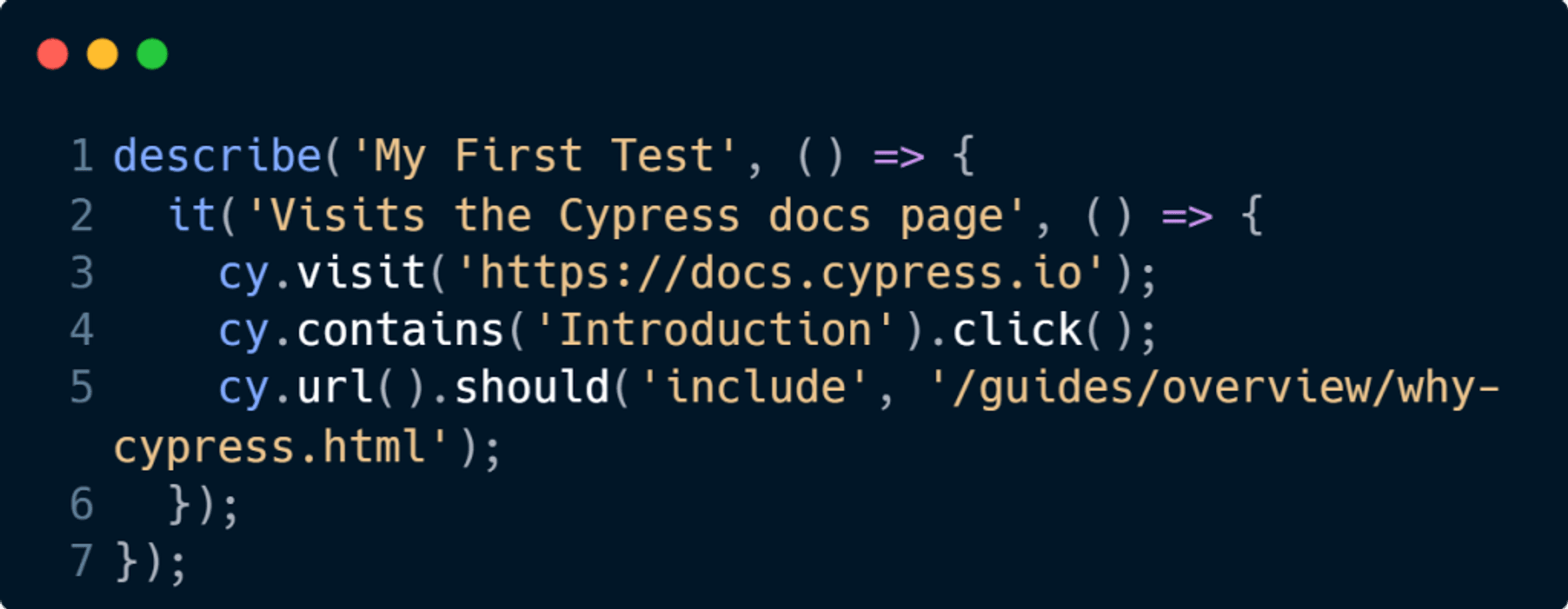 Bu örnekte, Cypress'in cy nesnesini kullanarak bir web sayfasını ziyaret ediyoruz, belirli bir metni içerip içermediğini kontrol ediyoruz ve URL'nin doğru olup olmadığını doğruluyoruz. Cypress'in sade ve anlaşılır sözdizimi, testlerin yazılmasını ve okunmasını kolaylaştırır.