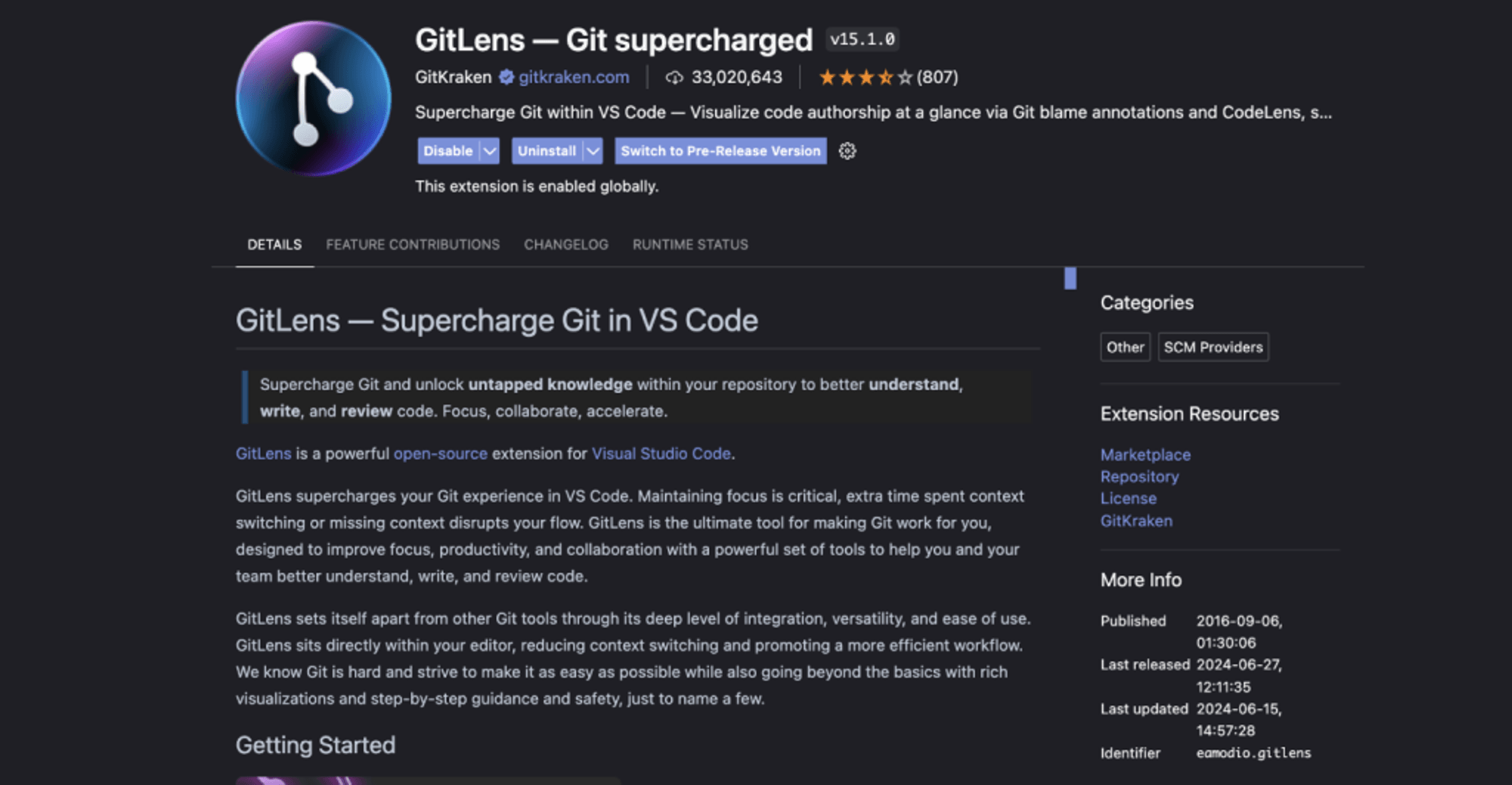GitLens, Git ile çalışan yazılımcılar için mükemmel bir eklentidir. Bu eklenti, kodunuzu kimlerin, ne zaman ve neden değiştirdiğini görmenizi sağlar. Ayrıca, GitLens ile dosya geçmişini inceleyebilir, farklı sürümleri karşılaştırabilir ve hata ayıklama sürecini kolaylaştırabilirsiniz. Örneğin, büyük bir projede çalışırken bir dosyanın geçmiş değişikliklerini görerek, hangi değişikliğin hangi sorunu çözdüğünü veya hangi yeni özellikleri eklediğini anlayabilirsiniz.