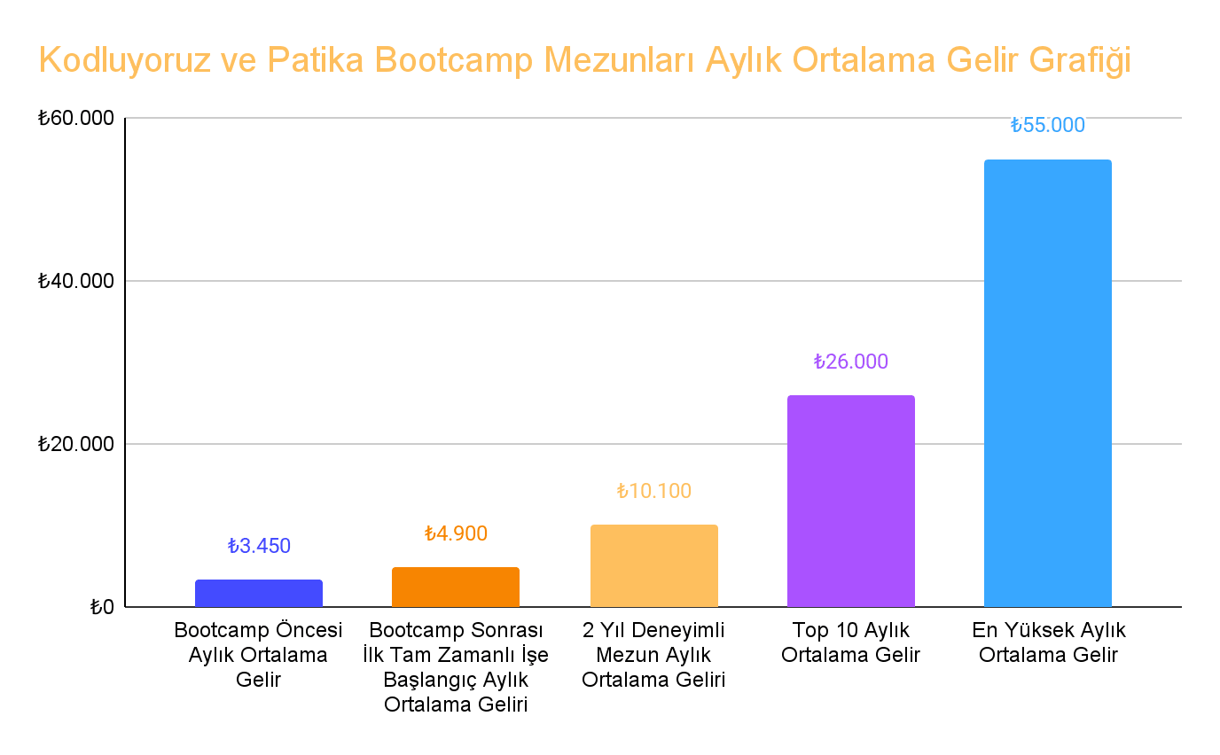 Bootcamp mezunlarımız 2 yıl sonra aylık ortalama 10.100 TL kazanıyor