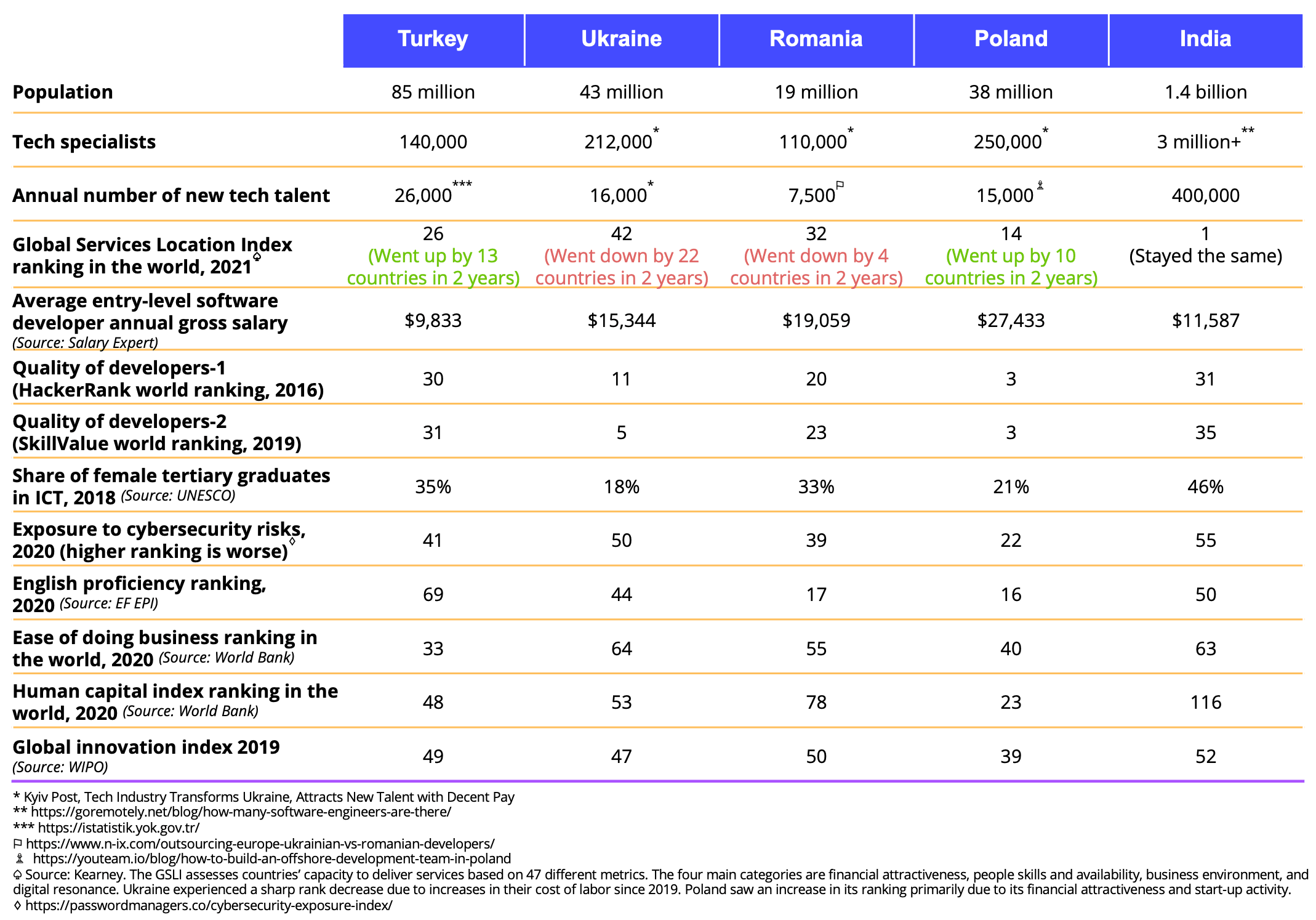 Talent pool in Turkey is growing faster than its Eastern European counterparts like Ukraine, Romania and Poland. This is expected since developers were a smaller share of the population and the market is correcting itself thanks to increasing demand.